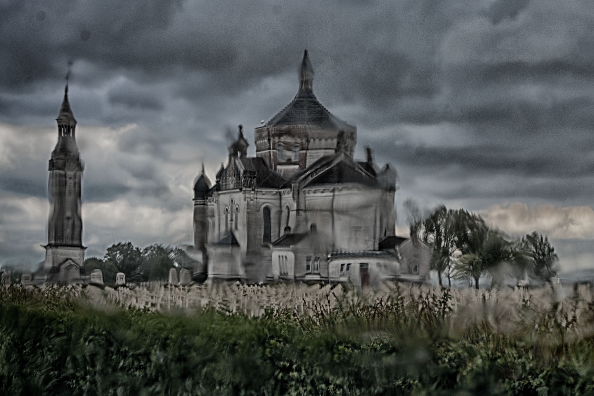 Cette photo a été prise par temps pluvieux , ce qui accentue le côté tragique de ce mémorial de la grande guerre 14/18 , Notre Dame de Lorette où 40000 soldats ont été enterrés